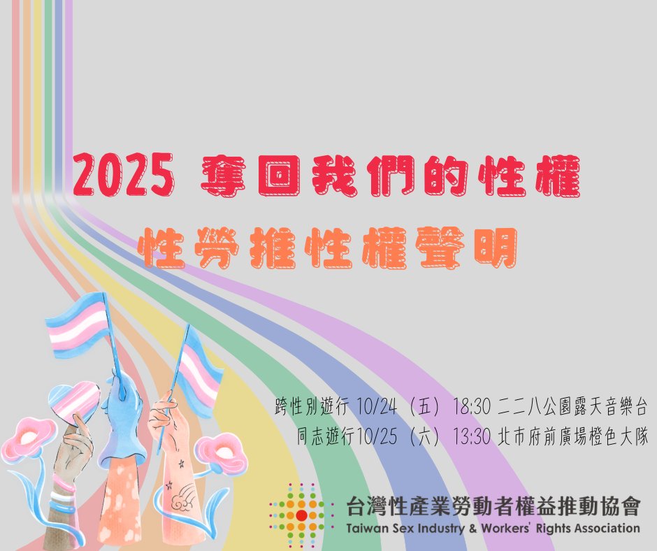 近年來,世界衛生組織、UNAIDS、國際特赦組織等國際組織與非政府組織,皆支持性工作全面除罪化,這也是本會一貫主張。我們不僅要求廢除《社會秩序維護法》第80條、第91-1條,這兩條侵犯性工作者人權的法規,更要求制定《性工作者權益保障法》,從「賦予性工作者權益(empower sex worker)」,而不是在「維護善良風俗」的過時框架,撤廢或管制性工作。如此才能讓性工作者「近用」國家的勞動保障與資源。